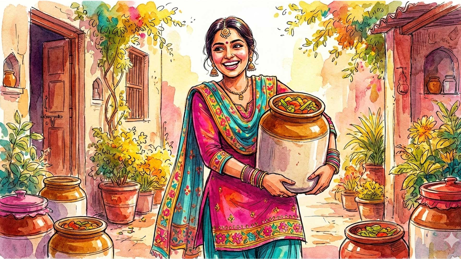 Our authentic pickle is crafted with ancient & traditional Punjabi recipe, where patience is the main ingredient. Hand-cut produce is sun-cured, slow-mixed, and lovingly matured to let deep, bold flavors awaken naturally. Every jar carries the warmth of Punjab’s farms & kitchens – rustic, wholesome, and timeless – taking you straight back to memories of homemade goodness.